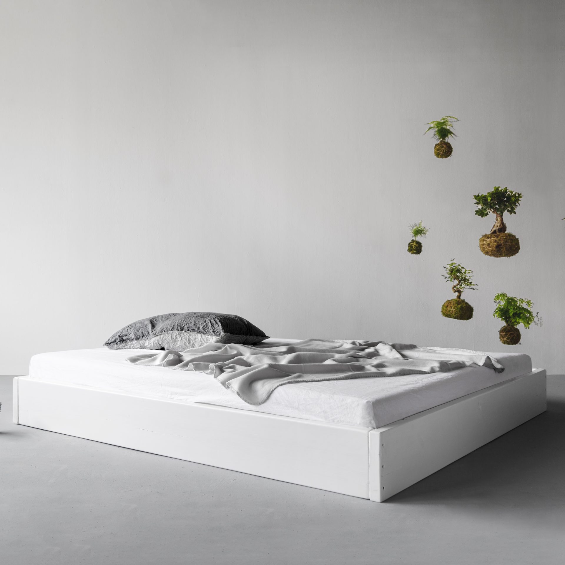 Bed made of lumber opaque white